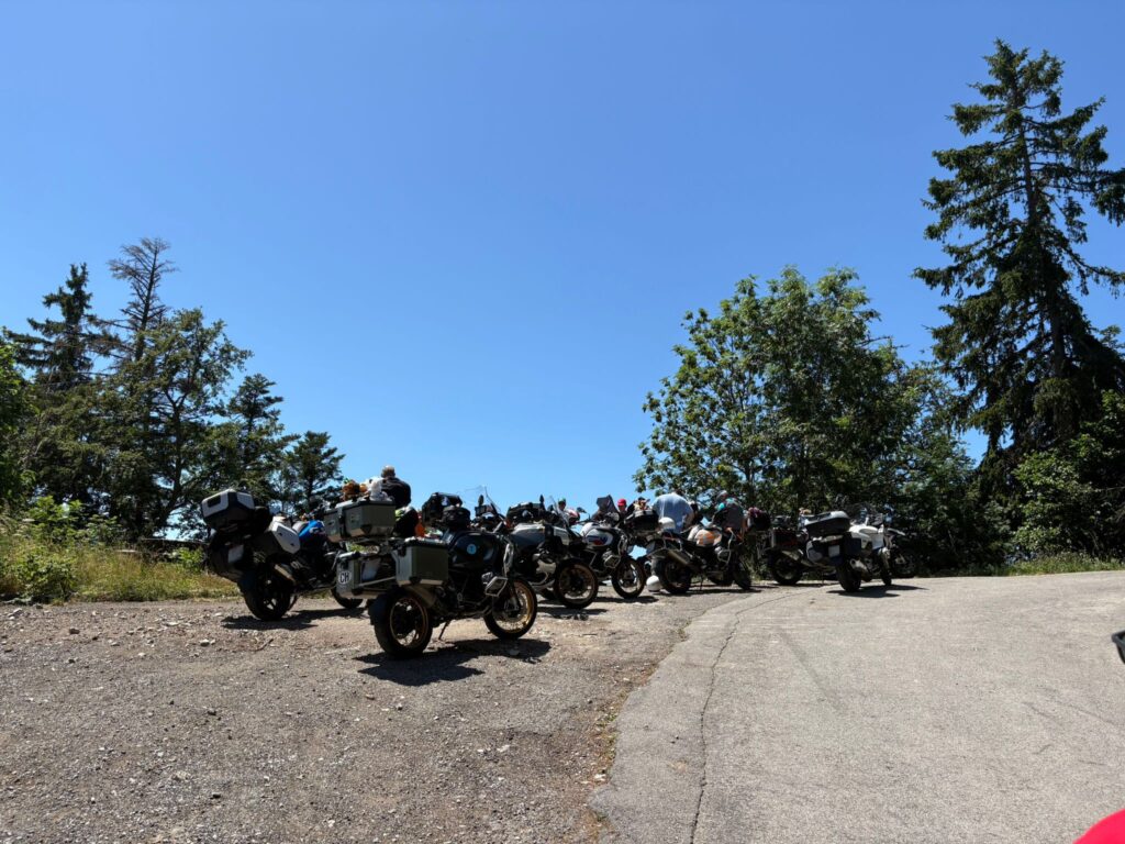 La joyeuse équipe, composée de 13 motos et 15 personnes, a ensuite pris la route direction l’auberge de Sonchaux, au-dessus de Villeneuve. L’itinéraire, parfait pour les GS, alternait chemins forestiers et points de vue spectaculaires sur le Léman.