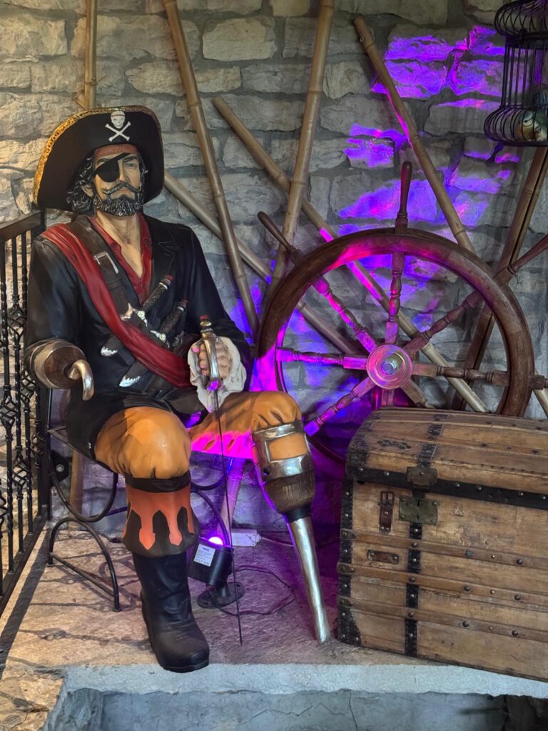Dès qu’on pousse la porte, on quitte la terrasse pour embarquer à bord d’un navire corsaire. La décoration pirate, audacieuse et immersive, surprend autant qu’elle amuse.